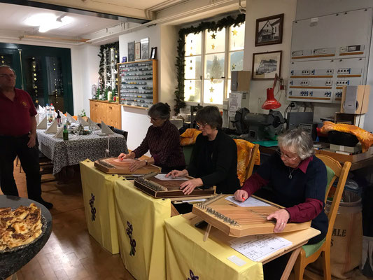 Am 14. Dezember 2023 haben sich 27 Mitglieder der Trachtengruppe in der weihnachtlich geschmückten Alten Schmitte in Eiken zum alljährlichen Chlaushock eingefunden. Anna Maria Theres, Benedikta und Häsi organisierten diesen Anlass zusammen. Anna Maria hat die Mitglieder zum letzten gemeinsamen Anlass in diesem Jahr begrüsst und in die weihnachtliche Atmosphäre eingeführt. Zum Apero gab es eine feine Quiche gebacken aus den Käseresten des Buurezmorge. Weihnachtliche Lieder, mit der wundervollen Begleitung auf der Zither von Madeleine, Ruth und Katrin, durften dabei nicht fehlen.