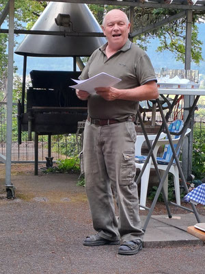 Am 8. Juni hat Anna Maria den Maibummel zum Hübelstübli nach Münchwilen organisiert. Da sie an diesem Tag an einer Klassenzusammenkunft ist, übernimmt Häsi die Hauptverantwortung dieses Anlasses am Abend. Wir treffen uns um sechs Uhr beim Bahnhof Eiken und sammeln unterwegs laufend weitere Bummler/-innen ein. Als die letzten Vereinsmitglieder beim Hübelstübli dazu gestossen sind, informiert uns Heiner Schwarb über seine Tierhaltung der schottischen Hochlandrinder. Wir geniessen indes ein feines Apéroplättchen mit Trockenfleisch. Anschliessend grilliert Heiner verschiedene Fleischstücke, wo Pommes und Salat dazu gereicht werden. Leider verfliegt die Zeit wie im Flug und so müssen wir nach dem Dessert bereits wieder die Rückreise antreten. Sei dies mit dem Auto, dem Bus und Zug oder zu Fuss.