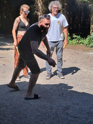 Am 24. Juni findet der Familienhock im Waldhaus Sisseln statt. Häsi, Irina Urech und Pascal organisieren diesen Anlass. Leider gibt es diverse Terminkollisionen, weshalb es viele Abmeldungen gibt. Trotzdem geniessen die 13 Teilnehmer/-innen einen lustigen, geselligen Nachmittag und trainieren beim Kubb-Spiel die Treffsicherheit und die Lachmuskeln.