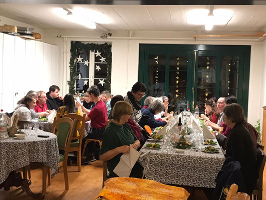 Für das leibliche Wohl sorgte das anschliessende Nachtessen unseres Kochs Häsi. Als Vorspeise gab es einen Nüsslisalat und danach gab es ein Risotto mit «Chüngel-Ragout». Während des Essens wurden die gemeinsamen Highlights aus dem vergangenen Vereinsjahr wieder zum Leben erweckt. Zum krönenden Abschluss gab es einen Dessertteller mit kleinen Vanille-Cornet, Fruchtsalat und einem Zimt-Glace-Stern. Bei den Organisatoren Anna Maria, Benedikta, Therese und Häsi bedanken wir uns ganz herzlich. Während wir noch etwas Musik genossen, planten einige Mitglieder bereits die Anlässe vom nächsten Jahr. Bis weit in die Nacht wurden Ideen und Gedanken dazu ausgetauscht, bevor sich die Mitglieder nicht ohne selbstgebackenen Weihnachtsguetzli auf den Weg nach Hause gemacht haben. Wer sich gerne an der Trachtentanzgruppe anschliessen möchte, ist jederzeit herzlich willkommen.