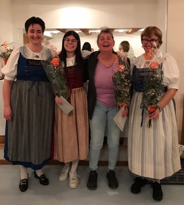 Der, mit vielen Bildern umrahmte, Jahresbericht der Präsidentin und die Jahresrechnung wurden mit Applaus gutgeheissen und verdankt. Bei den Mutationen durften vier Neumitglieder in die Trachtengruppe Eiken aufgenommen werden. Agi Böni und Ruth Frei stossen von der Trachtengruppe Rheinfelden nach Eiken, Sandra Antic liess sich offiziell (nach vielen Jahren im Kindertanzen) aufnehmen und Sonja Hunziker, die erst seit vergangenem November mittanzt, hat sich erfreulicherweise auch bereit erklärt, der Trachtengruppe Eiken beizutreten. Leider wechseln auch zwei Mitglieder von den Aktiven zu den Passiven.